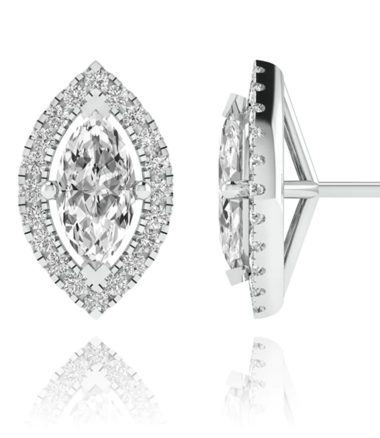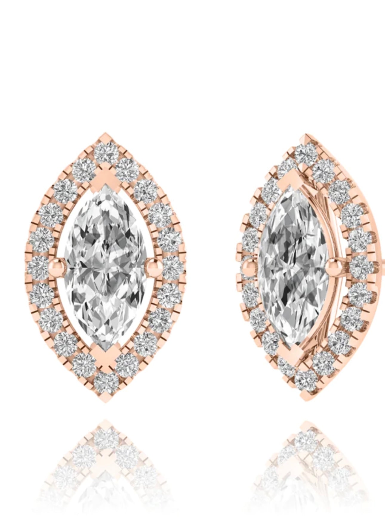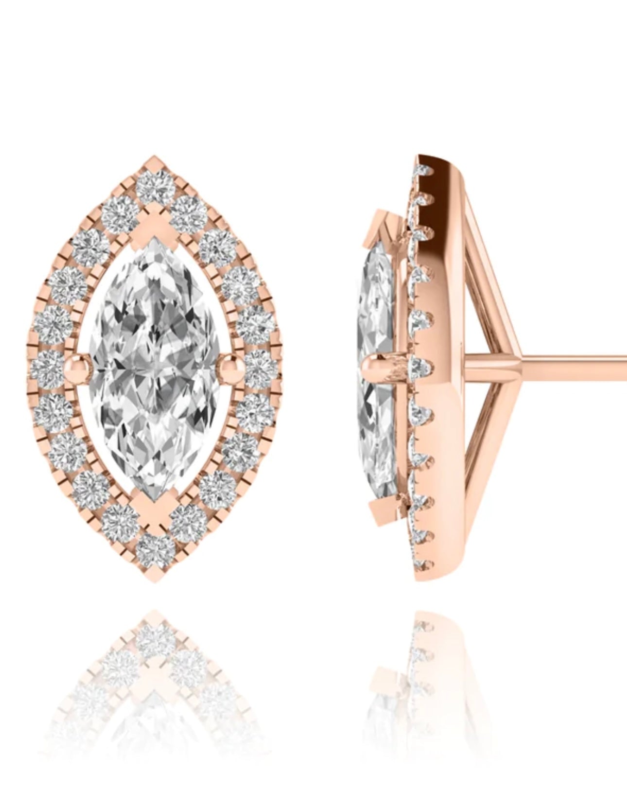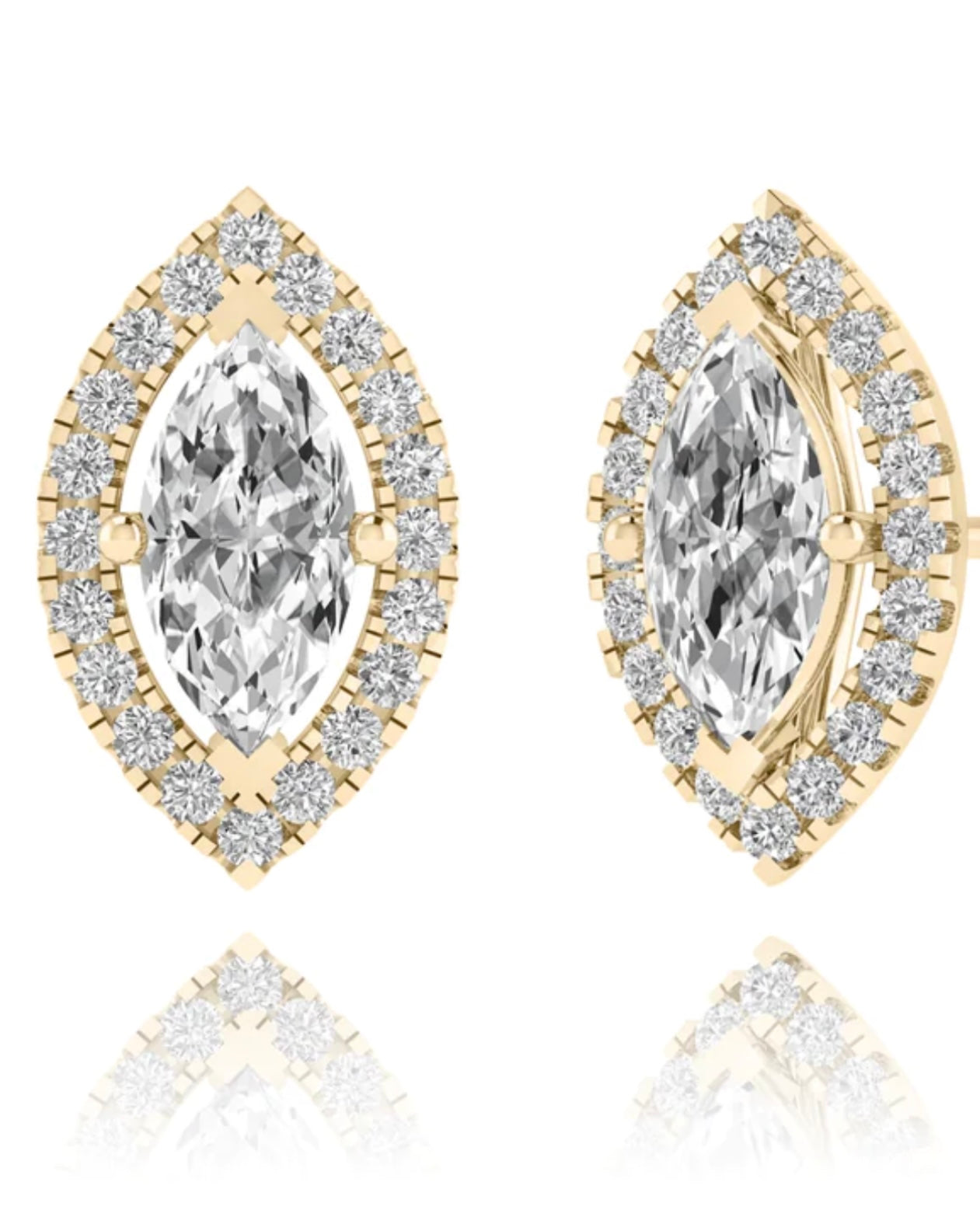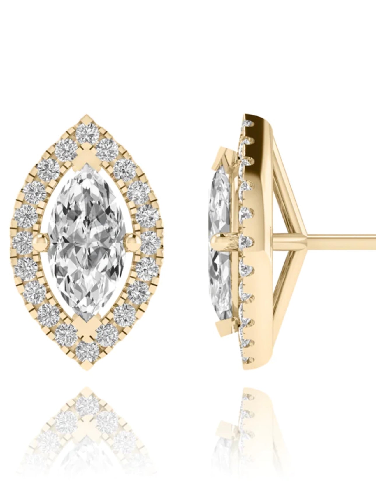 Expertly crafted using only the highest quality materials, these elegant Marquise cut Diamond Stud Earrings are now available in the luxurious 18kt Gold. A timeless addition to any jewelry collection, these brilliant earrings are sure to elevate any outfit."