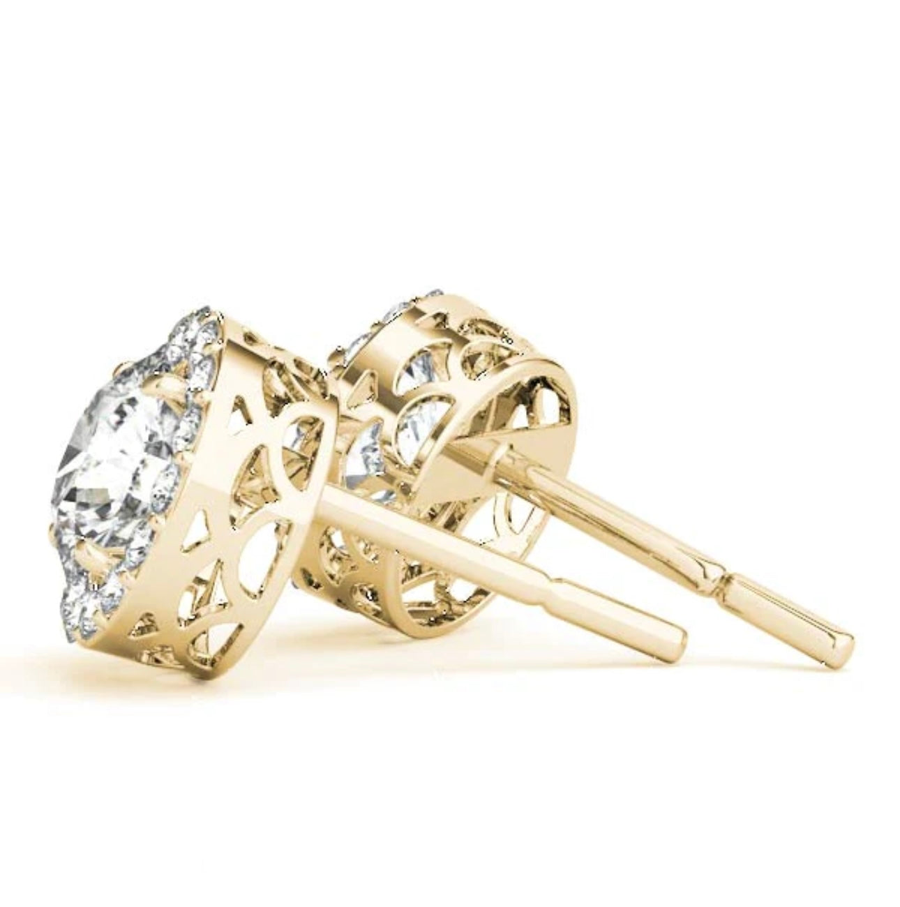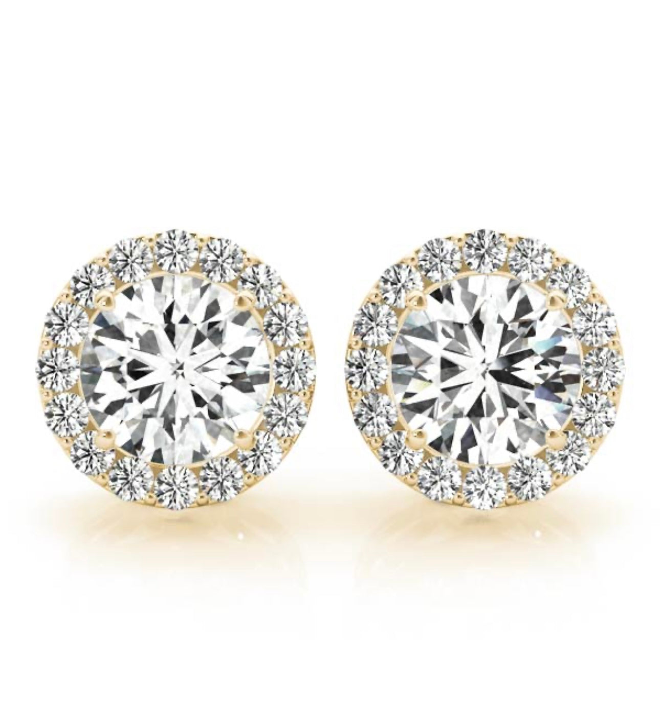 Our Gorgeous 18KT Gold Halo Brilliant Diamond Stud Earrings offer a classic and elegant look. With their secure 4 prong setting, these earrings provide a timeless and high-quality addition to any jewelry collection. Elevate your style with these stunning Diamond Studs.