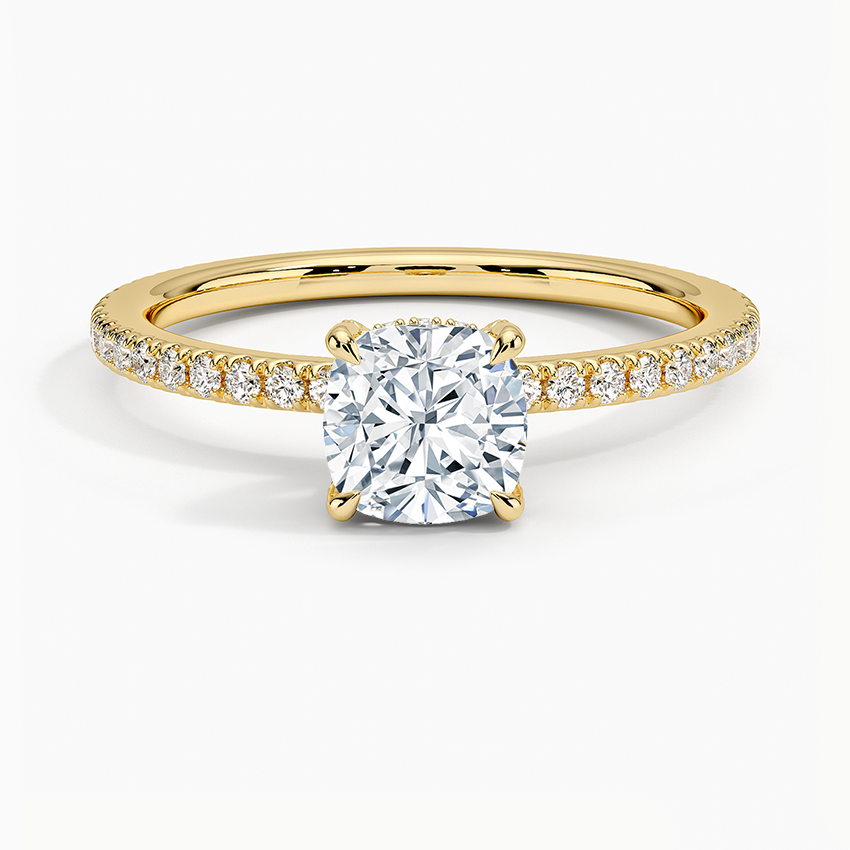 Our best-seller Cushion cut engagement ring, 18KT Gold is available in all sizes Sparkle and shine for a lifetime with our stunning Cushion cut engagement ring. Featuring a high-quality 18KT Gold, this ring will be a cherished piece for any lucky recipient. Available in all sizes, it's a timeless and versatile way to express your love and commitment.