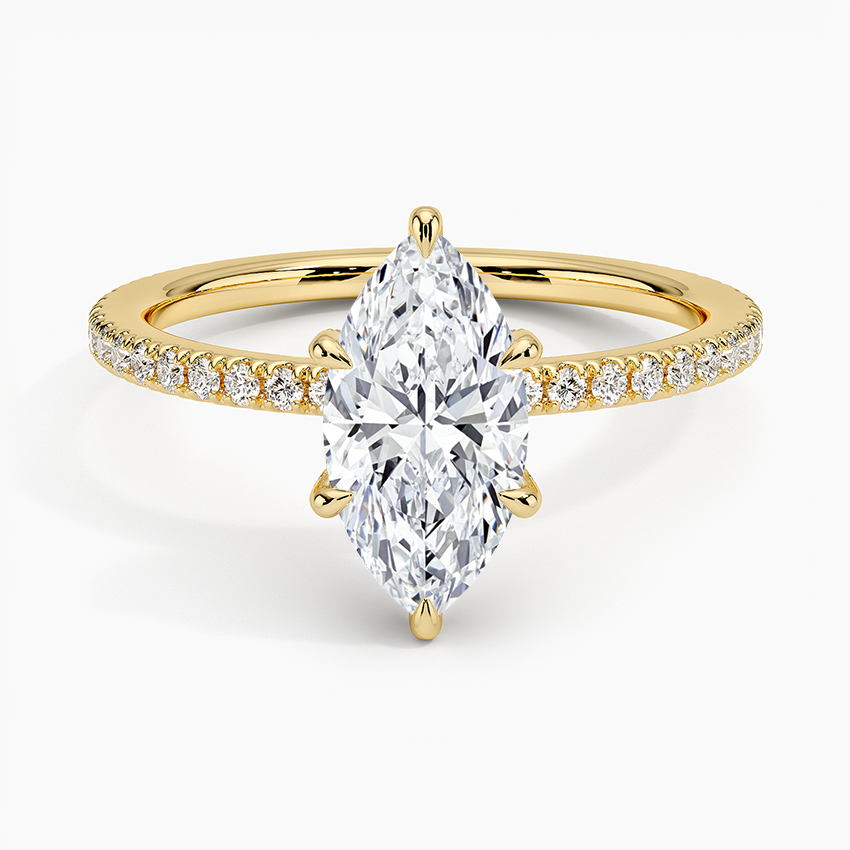 Our best-seller Marquise cut engagement ring, 18KT Gold is available in all sizes Sparkle and shine for a lifetime with our stunning Marquise cut engagement ring. Featuring a high-quality 18KT Gold, this ring will be a cherished piece for any lucky recipient. Available in all sizes, it's a timeless and versatile way to express your love and commitment.